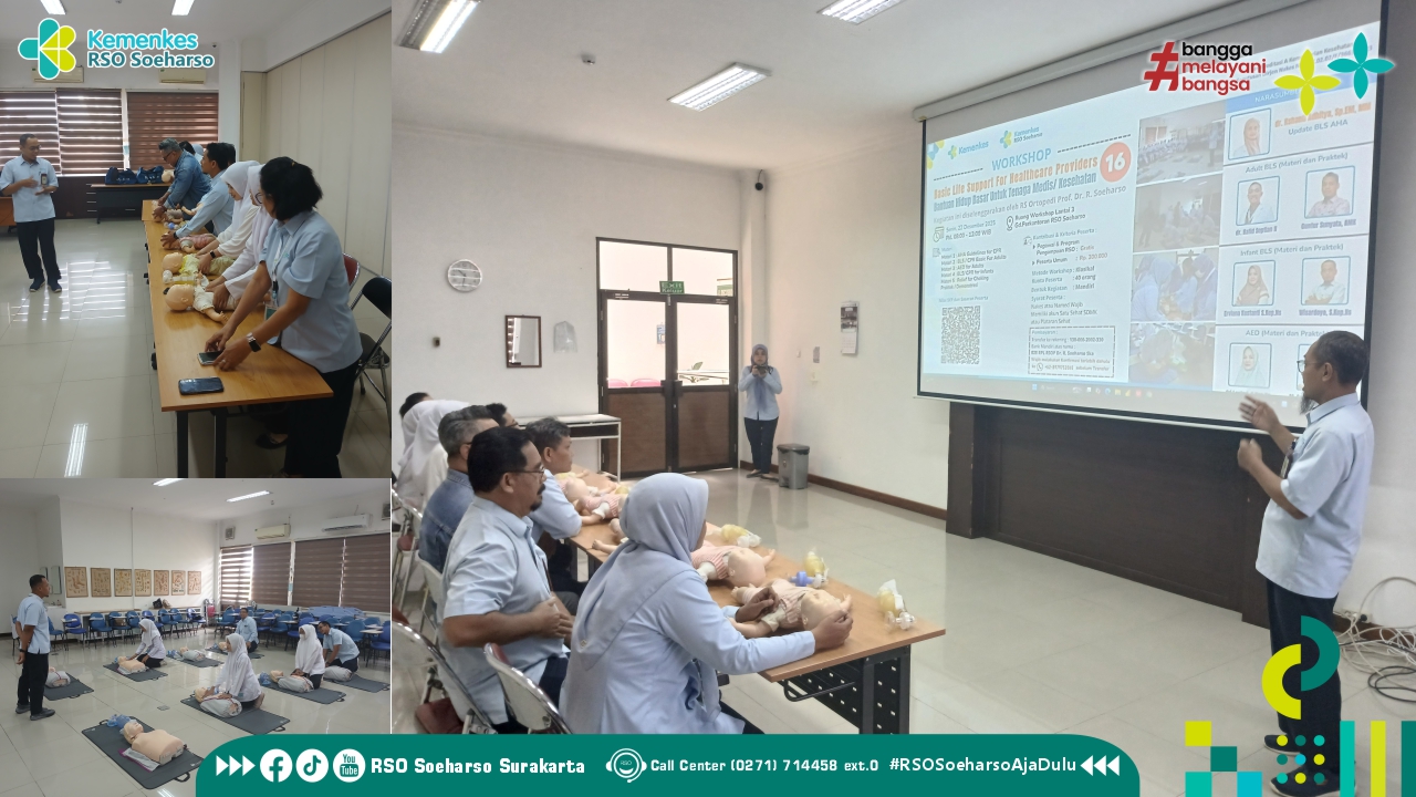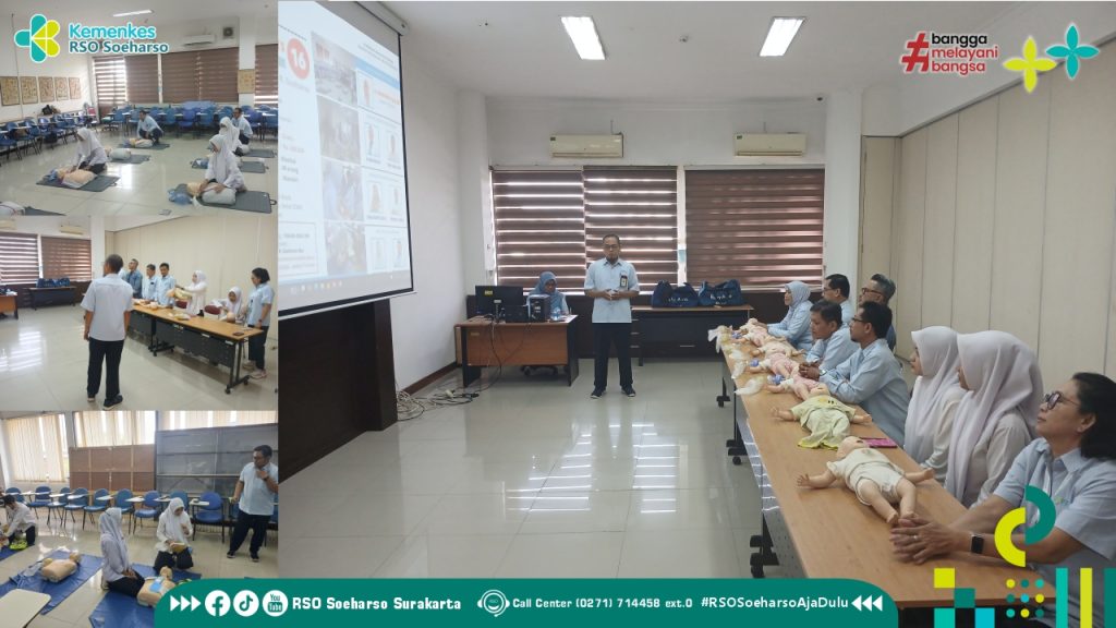 Sukoharjo [R.Workshop Lt.3] – Sub Tim Kerja Pendidikan & Pelatihan menyelenggarakan “Workshop Basic Life Support For First Responder Session 19” dengan 37 peserta terdiri dari UNISA Radiologi, Farmasi Indonusa, UNS Profesi Apoteker, Magang Nasional, ATRO Bali – Radiologi, ATRO Yogyakarta – Radiologi, dan peserta umum. Sebagai narasumber dr. Muhammad Setya Fachreza, Paryanto, S.Kep. Ners.MM, dan Tim BLS RSO Soeharaso serta moderator Terra Madhu Verend, S.KM. Workshop BLS Session 19 dibuka oleh Plt. Direktur SDM, Pendidikan dan Penelitian, Dina Sintia Pamela, S.Si, Apt, M.Farm.