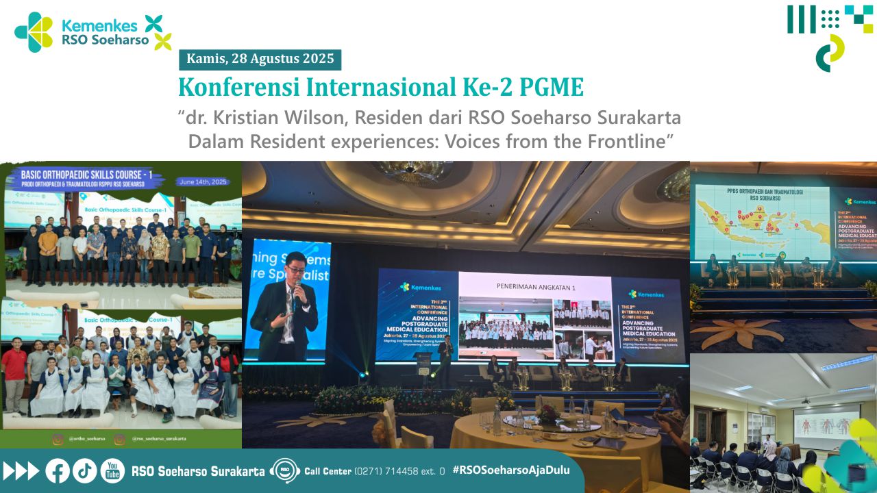 Jakarta – [Hotel Raffles Jakarta, 27-28 Agustus 2025] – Hari Ke-2 dari acara Konferensi Internasional ke-2 tentang Kemajuan Pendidikan Kedokteran Pascasarjana (PGME), tanggal 28 Agustus 2025 perwakilan residen berbasis rumah sakit (dokter residen yang bertugas di rumah sakit) dari RSO Soeharso dr Kristian Wilson menyampaikan berbagi pengalaman dalam menjalani pendidikan spesialis, tantangan sebagai tenaga medis menjadi garis depan dalam pelayanan pasien.
