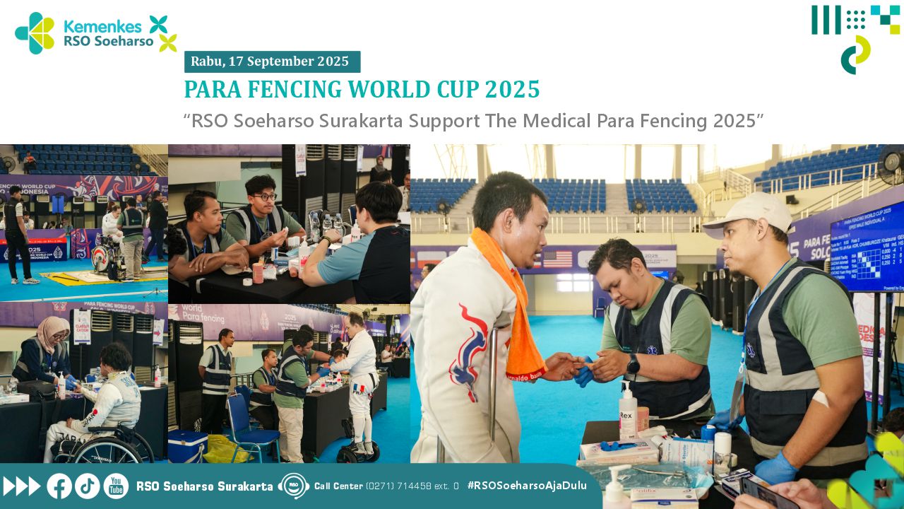 Surakarta [GOR Manahan] – RSO Soeharso Surakarta menjadi Support The Medical Para Fencing World Cup 2025 yang diselenggarakan selama 3 (tiga) hari pada tanggal 15 – 18 September 2025. Para Fencing World Cup adalah kejuaraan dunia resmi untuk olahraga anggar penyandang disabilitas (para fencing), yang diselenggarakan oleh IWAS (International Wheelchair and Amputee Sports Federation). Kejuaraan ini mempertemukan atlet-atlet anggar dari berbagai negara meliputi Australia, Perancis, Georgia, Jerman, Amerika Serikat, Korea Selatan, Polandia, Hong Kong, Britania Raya, Spanyol, India, Irak, Jepang, Argentina, Latvia, Thailand, untuk berkompetisi di tingkat internasional. Dan kejuaraan ini juga merupakan bagian dari kualifikasi menuju Paralimpiade, sehingga memiliki peran penting dalam karier atlet penyandang disabilitas. Para Fencing World Cup biasanya dilangsungkan di beberapa negara sepanjang tahun.